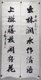 著名书画家、中央文史研究馆馆员 彭八百 书法对联《出林涧水作清语,上树藤枝开紫花》一副(纸本托片,约3.8平尺*2,钤印:溥皋)HXTX405945