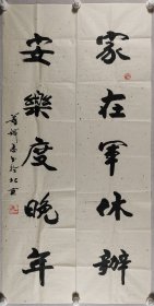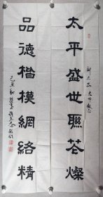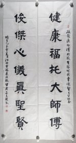 平凉市书法家协会理事、中国楹联学会会员 金秀礼 乙未年(2015)书法对联《健康福托大师傅,俊杰必仪真圣贤》一幅(纸本软片,约4.2平尺*2、共约8.4平尺,钤印:金修礼印)HXTX422614