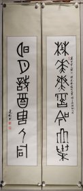 赵-锡-武旧藏:著名教育家、历史学家、方志学家 李泰棻 书、退休老干部 王佛忱 题词 篆书对联一副(纸本立轴,约4平尺*2、共约8平尺,钤印:李泰棻印、革痴)HXTX418601