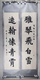 李-维-勤旧藏:著名书法家、中国书协理事、内蒙古书协主席 康庄 1993年书法对联《雅琴飞白雪,逸翰怀青霄》一副(纸本立轴,约3.9平尺*2,钤印:康庄)HXTX406186