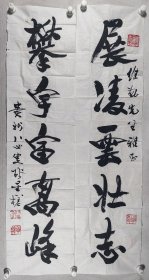 【同一来源】郝振林 己丑年书法对联作品《中华儿女多奇志,敢叫日月换新天》一幅(纸本立轴,画心约3.9平尺*2,钤印:郝振林印)HXTX411842
