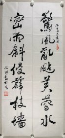 著名书法家、中国现代书画学会副秘书长 林信成 书法对联《惊风乱飐芙蓉水,密雨斜侵薜荔墙》”书法作品一幅(纸本软片,约3.3平尺*2,钤印:信成、美意延年)HXTX343834