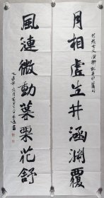 中国楹联论坛选粹:北京知名书画家 宋建 乙未年(2015)书法对联《月相虚生井涵渊覆,风涟微动叶栗花舒》一副(纸本软片,约4.2平尺*2、共约8.4平尺,钤印:宋建之印、花间草堂)HXTX242251