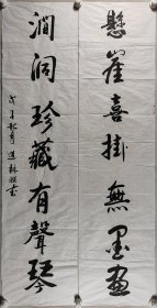 少将军衔、原总参谋部机要局研究员 杨道林 戊子年(2008)书法对联作品《悬崖喜挂无墨画,涧洞珍藏有声琴》一幅(纸本软片,约4.3平尺*2)HXTX411850