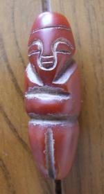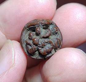 #橄榄核清代老核雕开光人物图案串珠一枚,有通天孔,两边开光人物图案,有一个好像缺失一点,别的完好。包浆温润老道,直径1.4-1.58公分,可能是橄榄核,配手串不错。实价