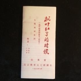 1977年马鞍山市话剧团演出《枫叶红了的时候》戏单1份