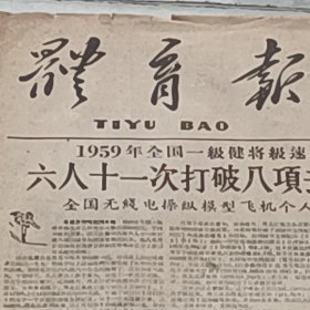 老报纸体育报1959年12月全国无线电操纵模型飞机个人冠军赛在北京良乡开幕晋华纺织厂体育活动电源钢铁公司自行车队练习山西阳泉 二号井采煤二队劳模张宗谦摔跤崔富海|运城县栲栳小学体育教师巩麦年万荣县贾村公社 通爱小学