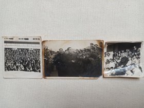 原版老照片3张:1950年2月四兵团进入云南,云南解放时昆明欢迎活动上照片(其中一张为入城照片,一张为周保中讲话照片,一张为陈赓将军、宋任穷、周保中将军在欢迎大会上照片。)