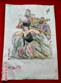 黄胄国画《初春》1978年印4开年画宣传画【边缘凹凸压花】品相以图自定,免争议
