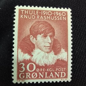 格陵兰邮票1960年 图勒传教和商业站50周年探险家 (图案:)名人物 克努德·拉斯穆森(1879 - 1933年),极地探险家 雕刻版外国邮票 新 1全 有软痕,随机发