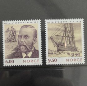 马丁莫克雕刻S219挪威2004年与格陵兰和加拿大联发 名人人物 奥托·斯维德鲁普诞辰150周年(1854-1930)极地科学家 极地探险 船 精美雕刻外国邮票 新 2全 MNH