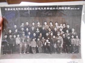 老照片《全家欢送支援边疆建设兵团伟大革命战士小闯将合影》。两儿子带红花。