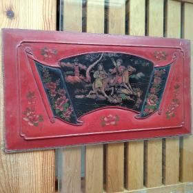 老木雕漆画花板一块,尺寸55/30公分,造型别致,独具匠心,革命历史题材,一名解放军战士和一名猎人骑马奔驰在祖国的边疆,保卫边防。当做摆件或者装框悬挂都很漂亮,很怀旧。