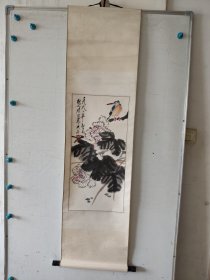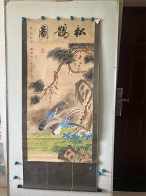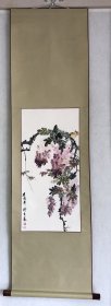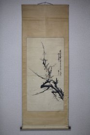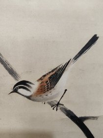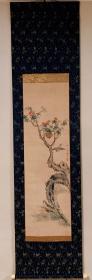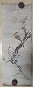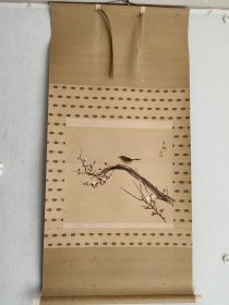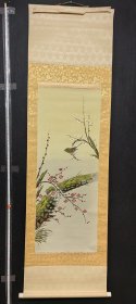 罕见!日本地方名家中浜松香1901年醉后所作,雪竹小鸟图,纸本绫裱,骨质轴头(少一盖片),画心97*30,作者情况见于《北国人物志》,曾为《金城胜览图志》作插图画,其作品罕见,实可宝之