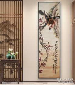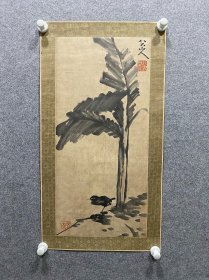 八大山人芭蕉小鸟图,纸本镜片,画心尺寸66x31cm。水墨写意,构图精妙,芭蕉叶墨色浓淡相宜,小鸟生动传神。边框精美,