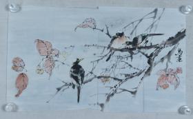 中国花鸟画主题性创作研究会副会长兼秘书长、北京泰德书画研究院院长 马亮 作 国画作品《红叶小鸟》一件(纸本软片,画心约2.5平尺,钤印:马亮)HXTX196596