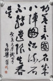 张大千弟子、著名画家、中央美术学院教授 梁树年 1983年“录杜甫《八阵图》”书法作品一幅(纸本软片,约2.9平尺,钤印:豆村、梁树年)HXTX299602