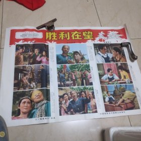 出口用4开宣传画(胜利在望)英文版 一张:(毛主席与林彪在山上,少见林彪在主席右侧像,4开,52/30厘米,厚铜板纸彩色精印,包老保真,品相如图,红色收藏精品