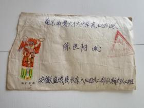 老实寄封-----《美术封:杨门女将,义务兵免费信件,内有16开1页关于新兵训练已经结束和朋友分在团指挥连,朋友是测地兵,自己是侦察兵。另有16开2页家信,1985年》!