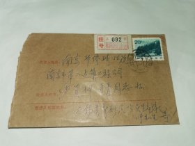 老实寄封---《贴代边邮票,5张合售!第一届青少年运动会,新疆维吾尔自治区成立三十周年,邹韬奋诞生九十周年》!(挂号信,1985年,内无信)
