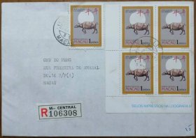 中国澳门1985年生肖牛年邮票实寄封 1986.2.8本埠挂号