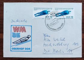 德国邮票 东德首日实寄封 1985年第二十四届世界雪橇滑雪锦标赛
