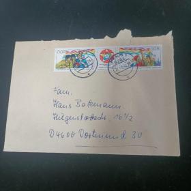 F2813外国实寄封 贴民主德国邮票1985年 第12届世界青年联欢节 2全