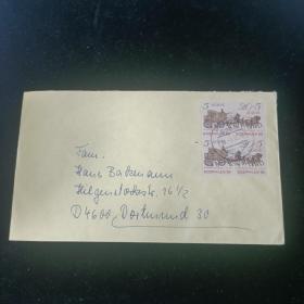 F2811外国实寄封 贴民主德国邮票 东德1985年 国际邮展 邮递马车 2套2全方联