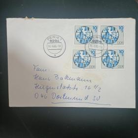 F2816外国实寄封 贴东德邮票 1985年团结.地图.和平鸽 1全