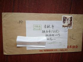 实寄封(内附齐鲁中医函授大学简章一份,登记表一份,巜山东科学小报》公函封),1985年济南至吉林市,邮资已付戳
