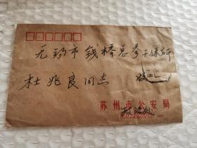 老实寄封-----《邮资已付,内有16开1页苏州市公安局信件,苏州市公安局,1985年》!