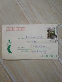 有信件实寄封:内详→重庆市市中区人民村8号蒋汪洋.无邮票.美术封.1985年11月
