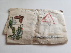 老实寄封-----《美术封:蝴蝶,义务兵免费信件,内有16开1页信,1985年》!