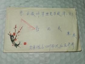 老实寄封-----《美术封:红梅,义务兵免费信件,内有16开2页信,1985年》!