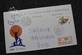 JT票实寄封J112人民之友北京密云1985年到浙江双戳挂号