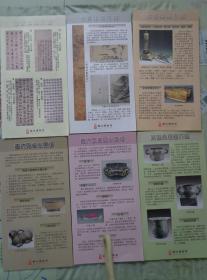 镇江博物馆古代珍品小常识系列折页 一套六张 2017年 32开 通过镇江博物馆展品介绍古代陶瓷、金银器、书法、绘画、工艺品、吴国青铜器小常识。
