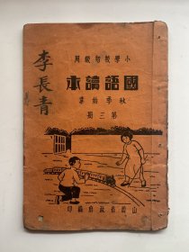 国语读本 第三册 秋季始业 小学校初级用 山西省政府编印 编辑者:小学国语读本编修委员会 发行所:太原第一土货产销合作商行 印刷者:西北实业公司印刷厂(民国版、有彩画、品如图)
