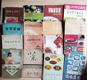 80年代菜谱系列10本合售:中国南北名菜谱、菜中之菜、滋补中药保健菜谱、冷盘集锦、节日家宴菜谱、家庭药膳、大众西餐、家常菜300款、中国名菜谱精萃300例、家庭蔬菜烹调350种、