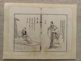 古籍散页《东周列国全传》一页,版画“范蠡、西施” ,这是一张木刻本古籍散页,不是一本书,页面轻微破损缺纸,已经手工托纸,作品尺寸请参照首张图片上的标尺。