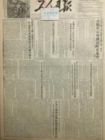 原版1953年10月工人日报,任弼时同志逝世三周年纪念日,中共中央办公厅的单位代表前往墓地扫墓,纪念中国人民志愿军出国作战三周年,志愿军领导机关隆重集会