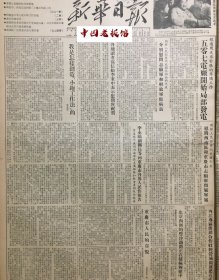 原版1954年 新华日报重庆版 北京西侧的丰沙铁路正在积极兴建中 杨建之河新式步犁 西南少数民族人民积极参加普选活动 成吉思汗灵柩由青海移回内蒙古 首都机关干部祭扫任弼时同志陵墓