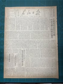 1949年4月15日(东北日报) 任弼时同志在青年团代表大会上的政治报告。制药四分厂、沈阳纺织厂支援大军南渡长江,集中全力紧张生产。