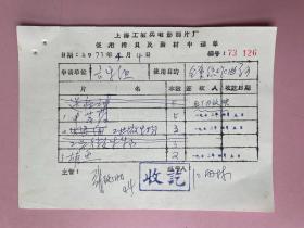 名人墨迹,1973年电影资料,(北京电影制片厂科教片组——上海科学教育电影制片厂——上海工农兵电影制片厂——上海东方明珠实业发展有限公司), 上海工农兵电影制片厂, 音乐组 签名 江雨林 作曲家 《战斗的山村》 配乐