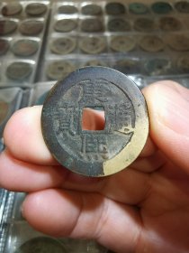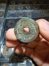 崇祯通宝背二 未清理状态 一线出品 保真包老包入盒 古钱明钱铜钱古钱币 直径29.31mm*1.9mm,重5.24g,状态不错,优惠出,拿回去清理还是非常不错的。 感兴趣的话和我私聊吧~