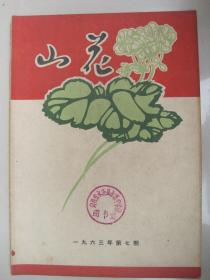 早期文学期刊:山花(1963年第7期)贵州作协主办。封面设计刘复羊、封二陈恒安书法、封三邓刚彦作笛(油画)、封底徐英培作东风染尽三千顷(套色木刻)、插页袁晓岑傣家歌手唱祖国(雕塑)及李自由作新来的老师(油画)。馆藏品佳、书内未翻阅