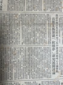 首都文艺界就红楼梦研究展开讨论,李希凡、蓝翎。俞平伯。佛子岭水库胜利完工!整版照片!越剧演员傅全香、徐慧琴、魏凤娟。张桂凤、金艳芳、吕瑞英、竹芳森、陈少春、吴天芳、丁赛君、项彩莲。《新闻日报》