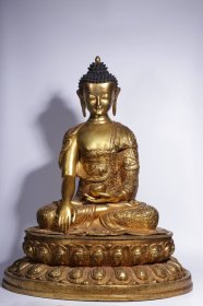 清代,铜鎏金佛衣錾刻传法图释迦牟尼佛坐像(后封底)