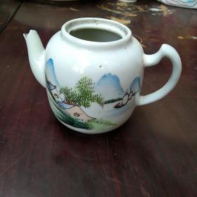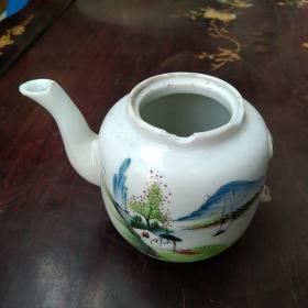 八十年代远山近水雪景茶壶 此茶壶约300毫升,胎壁纤薄,灯打胎光,整器胎质坚实、细腻,光洁莹润,纯净明亮。印花纹饰,整体图案纹饰错落有致,动静结合相宜,灵动而富有情趣,全品,随机发货!