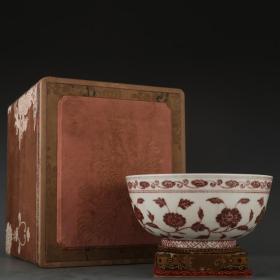旧藏大明宣德釉里红花卉碗尺寸;口