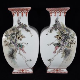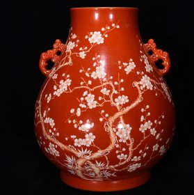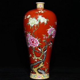 清乾隆矾红花鸟纹梅瓶 高33cm直径16cm 价格5000
